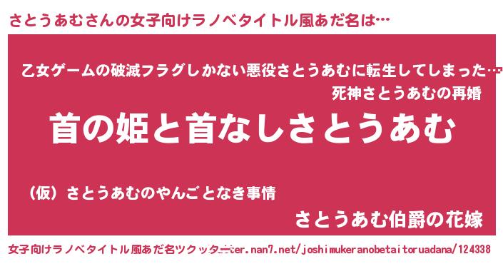 | 意味不明あだ名 | 『住所不定無職さとうあむ(98歳)』 |