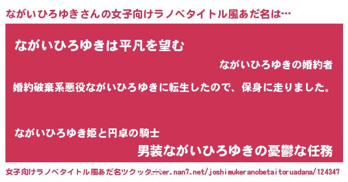 | 男性向けラノベタイトル風あだ名 | 『転生したらながいひろゆきだった件』 |