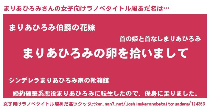 | 男性向けラノベタイトル風あだ名 | 『まりあひろみの嫁は女の子じゃないと思った?』 |