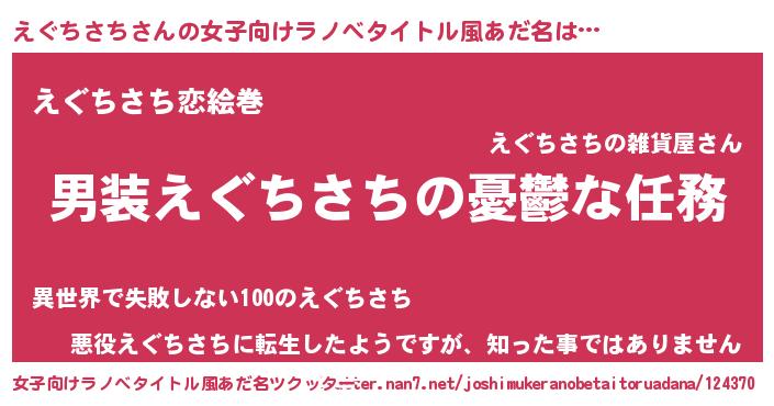 | 男性向けラノベタイトル風あだ名 | 『冴えないえぐちさちの育てかた』 |