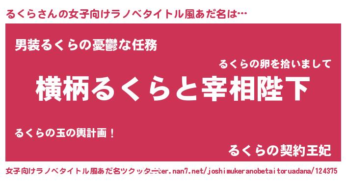 | ヘコむあだ名 | 『るくら(震え声)』『るく太郎』 |
