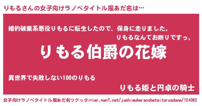 | ファンタジー風あだ名 | 『エターナルリモルー』『リモフェル』 |