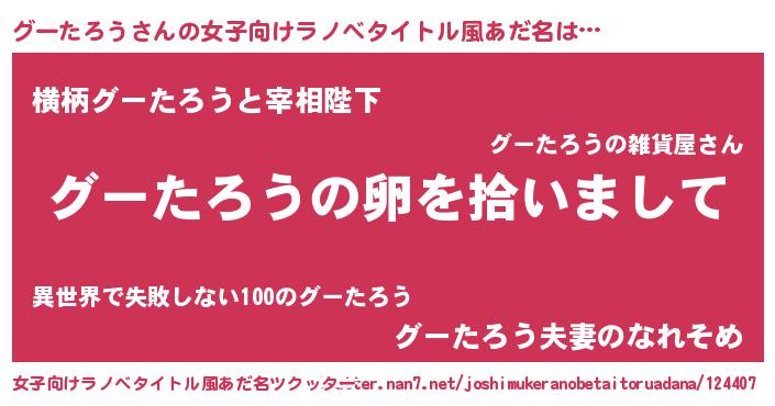 | 男性向けラノベタイトル風あだ名 | 『ダンジョンにグーたろうを求めるのは間違っているだろうか』 |