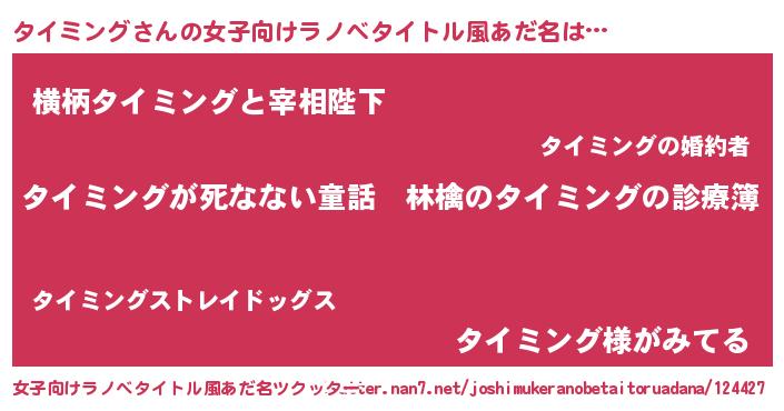 | 意味不明あだ名 | 『住所不定無職タイミング(79歳)』 |