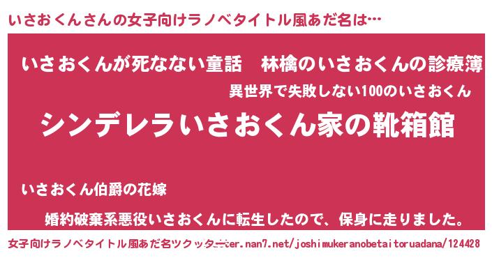 | 男性向けラノベタイトル風あだ名 | 『冴えないいさおくんの育てかた』 |