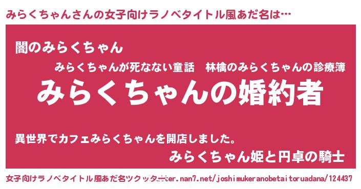 | 欧米人風あだ名 | 『みらくちゃんクリステル』 |