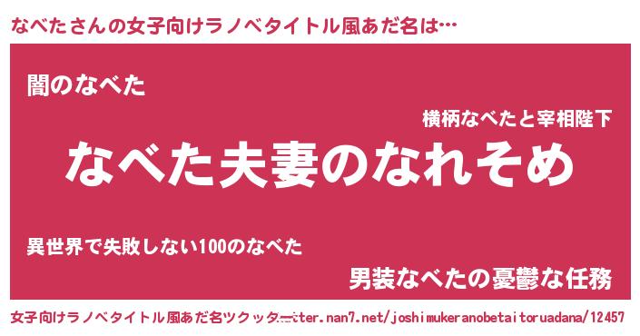 | 意味不明あだ名 | 『眠気覚ましガムなべた味』『自称なべた』 |
