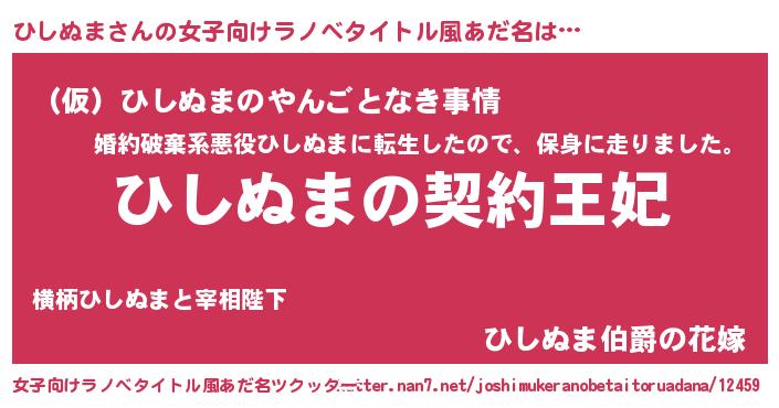 男性向けラノベタイトル風あだ名 | 『誰もが恐れるあのひしぬまが、ぼくの専属メイドになるようです。』 |