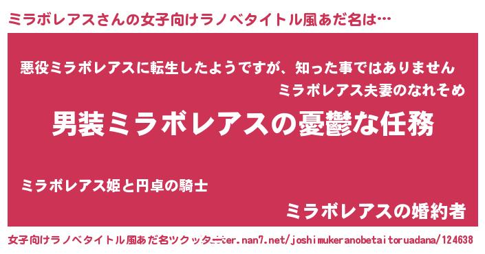 | 男性向けラノベタイトル風あだ名 | 『うちのミラボレアスが世界を掌握している!』 |