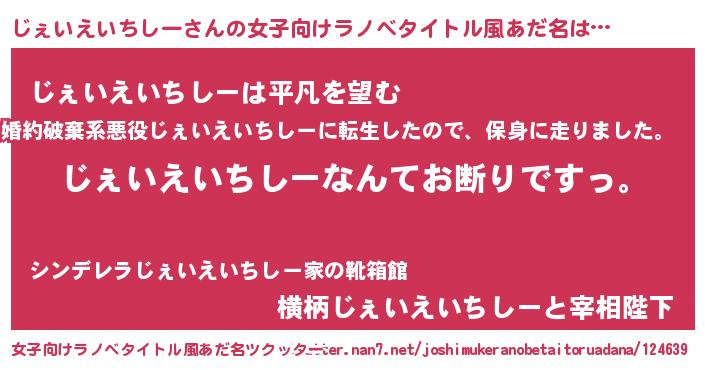 | 意味不明あだ名 | 『自称じぇいえいちしー』 |
