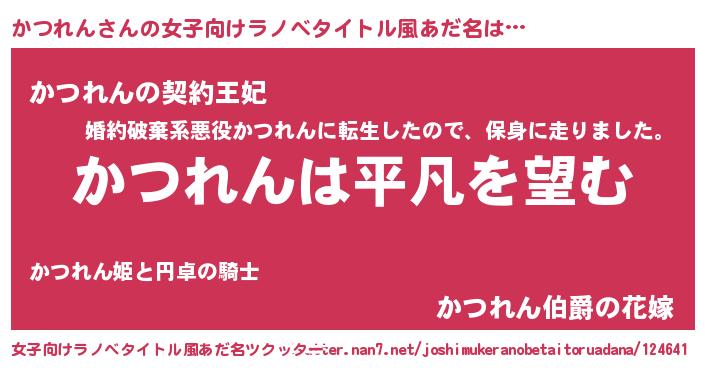 | 男性向けラノベタイトル風あだ名 | 『ダンジョンにかつれんを求めるのは間違っているだろうか』 |