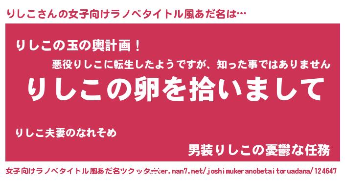 | 胡散臭い通販商品みたいなあだ名 | 『伝統あるサプリメント…その名も「りしこ」』 |
