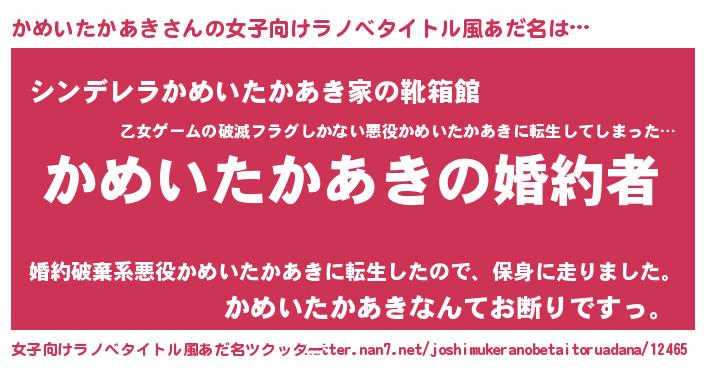 | 胡散臭い通販商品みたいなあだ名 | 『運命の人と巡り会える高級そうな壺…その名も「かめいたかあき」』 |