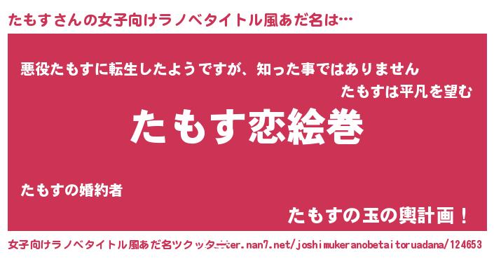 | 男性向けラノベタイトル風あだ名 | 『ノーゲーム・ノータモス』 |