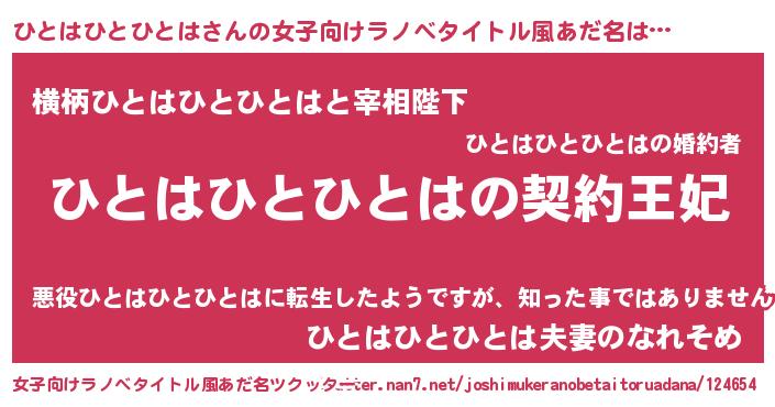 | 胡散臭い通販商品みたいなあだ名 | 『来世でも幸せになれる健康食品…その名も「ひとはひとひとは」』 |
