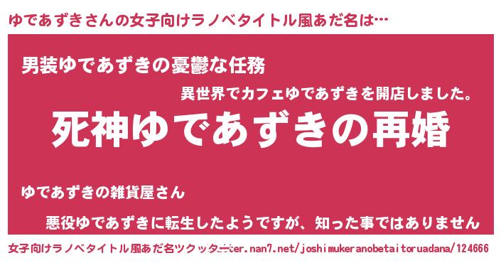 | 男性向けラノベタイトル風あだ名 | 『ノーゲーム・ノーユデアズキ』 |