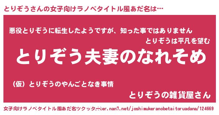 | 料理風あだ名 | 『とりぞうのトマト煮』 |