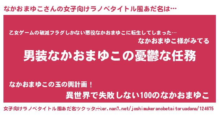 | 男性向けラノベタイトル風あだ名 | 『うちのなかおまゆこが世界を掌握している!』 |