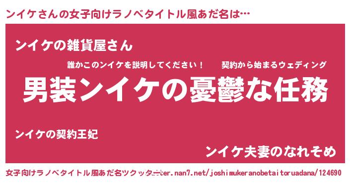 | 男性向けラノベタイトル風あだ名 | 『うちのンイケが世界を掌握している!』 |