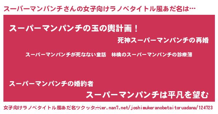 | 男性向けラノベタイトル風あだ名 | 『魔弾の王とスーパーマンパンチ』 |