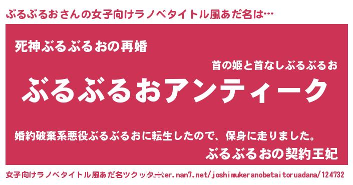 | 男性向けラノベタイトル風あだ名 | 『魔法科高校のぶるぶるお』 |