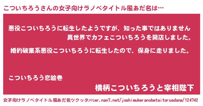 | 男性向けラノベタイトル風あだ名 | 『転生したらこついちろうだった件』 |
