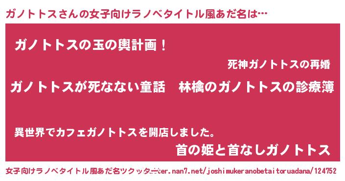 | 意味不明あだ名 | 『住所不定無職ガノトトス(98歳)』 |