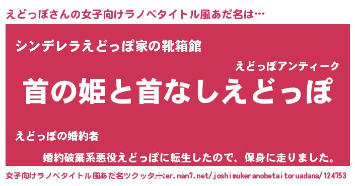 | ヘコむあだ名 | 『豆乳』『えどにー』『えど太郎』 |