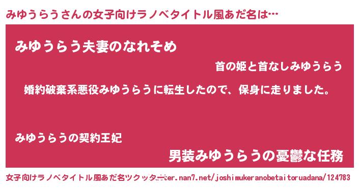 | 男性向けラノベタイトル風あだ名 | 『ミユウラウスレイヤー』 |