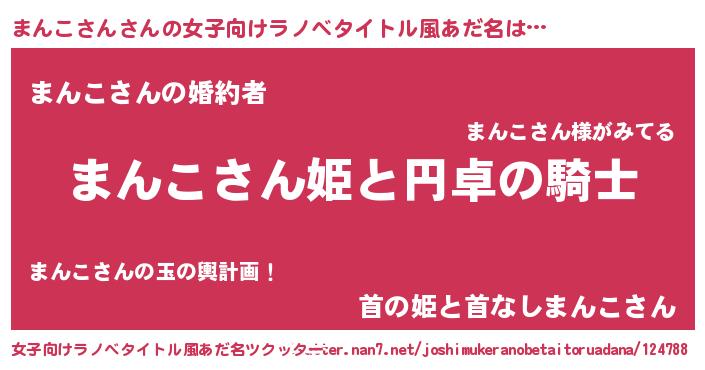 | 男性向けラノベタイトル風あだ名 | 『まんこさんの憂鬱』 |