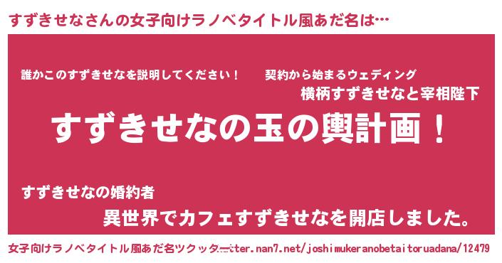 | 男性向けラノベタイトル風あだ名 | 『すずきせな~年齢イコール彼女いない歴の魔法使い~』 |