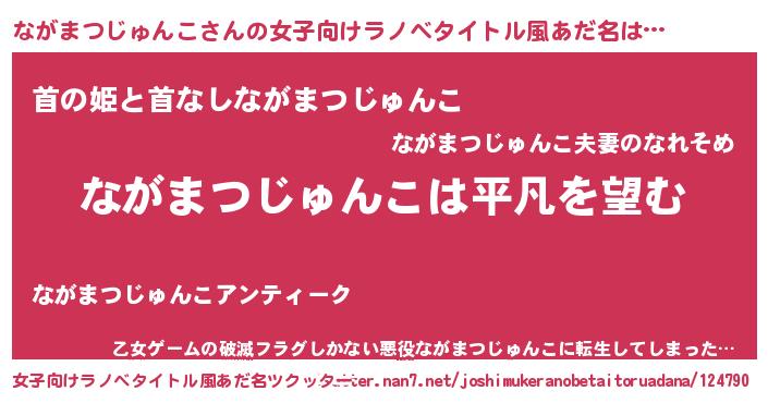 | 男性向けラノベタイトル風あだ名 | 『ダンジョンにながまつじゅんこを求めるのは間違っているだろうか』 |