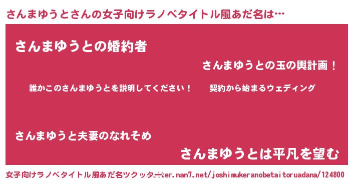 | 男性向けラノベタイトル風あだ名 | 『サンマユウトアートオンライン』 |