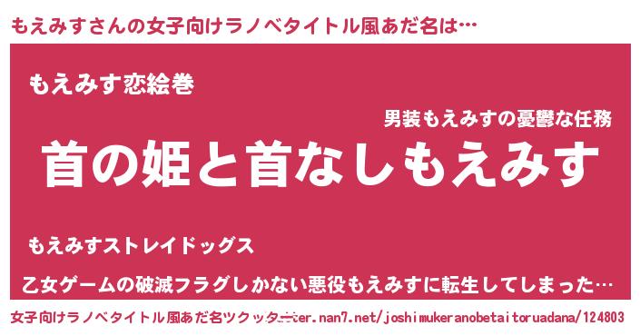 | 男性向けラノベタイトル風あだ名 | 『はたらくもえみすさま!』 |