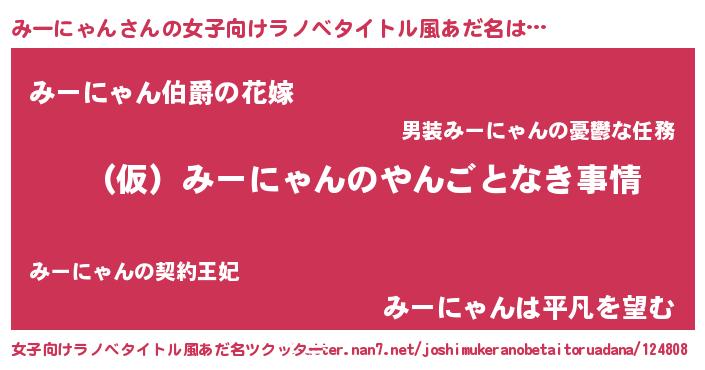 | ファンタジー風あだ名 | 『ミーフェル』『エターナルミーニャンー』 |