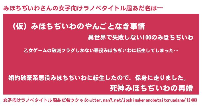 | 男性向けラノベタイトル風あだ名 | 『この素晴らしい世界にみほちぢいわを!』 |