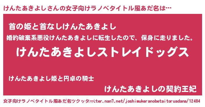 | 男性向けラノベタイトル風あだ名 | 『Re:けんたあきよしから始める異世界生活』 |