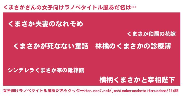 | 胡散臭い通販商品みたいなあだ名 | 『ハリウッド女優が絶賛した100年もののヴィンテージワイン…その名も「くまさか」』 |