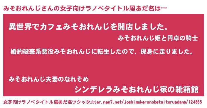 | 男性向けラノベタイトル風あだ名 | 『ミソオレンジスレイヤー』 |