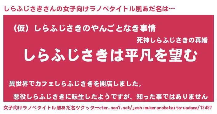 | 胡散臭い通販商品みたいなあだ名 | 『信頼と実績のネックレス…その名も「しらふじさき」』 |