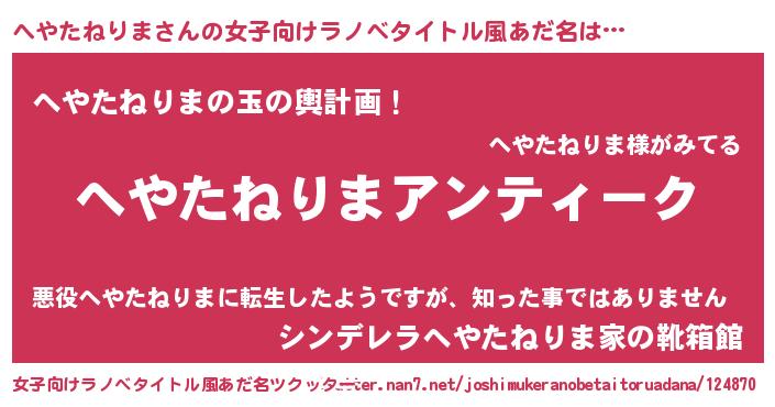 | 意味不明あだ名 | 『自称へやたねりま』 |