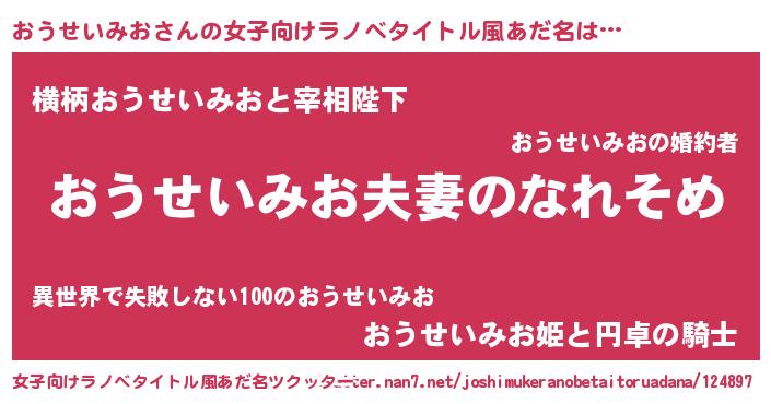 | 男性向けラノベタイトル風あだ名 | 『おまえをオタクにしてやるから、俺をおうせいみおにしてくれ! 』 |