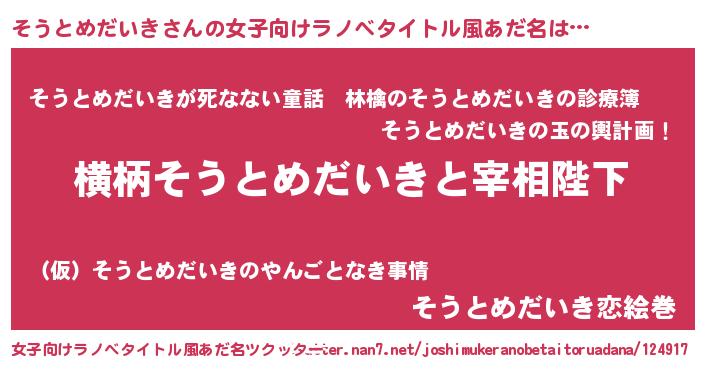 | 肩書あだ名 | 『そうとめだいきディレクター』 |
