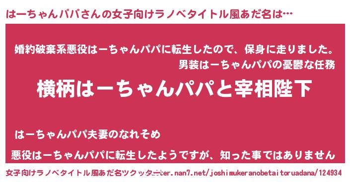| 男性向けラノベタイトル風あだ名 | 『はーちゃんパパに滅ぼされるだけの簡単なお仕事です』 |
