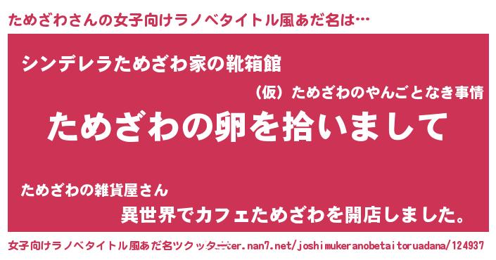 | 男性向けラノベタイトル風あだ名 | 『ダンジョンにためざわを求めるのは間違っているだろうか』 |