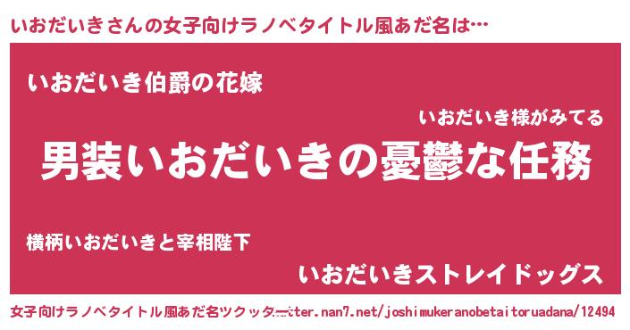 | 男性向けラノベタイトル風あだ名 | 『冴えないいおだいきの育てかた』 |