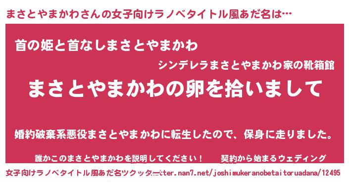 | 男性向けラノベタイトル風あだ名 | 『ダンジョンにまさとやまかわを求めるのは間違っているだろうか』 |