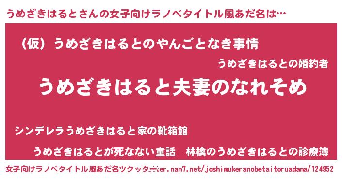 | 男性向けラノベタイトル風あだ名 | 『おまえをオタクにしてやるから、俺をうめざきはるとにしてくれ! 』 |