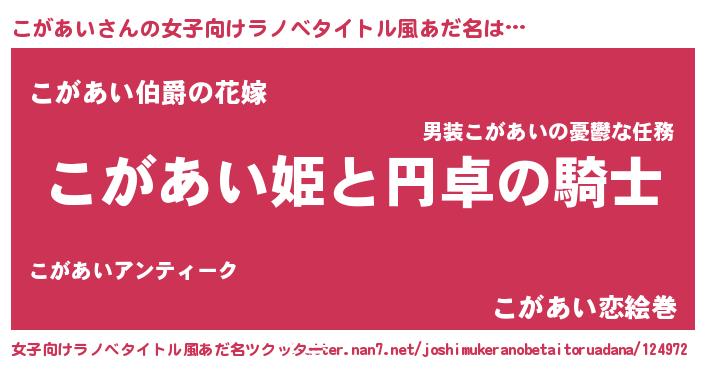 | 男性向けラノベタイトル風あだ名 | 『こがあいの憂鬱』 |