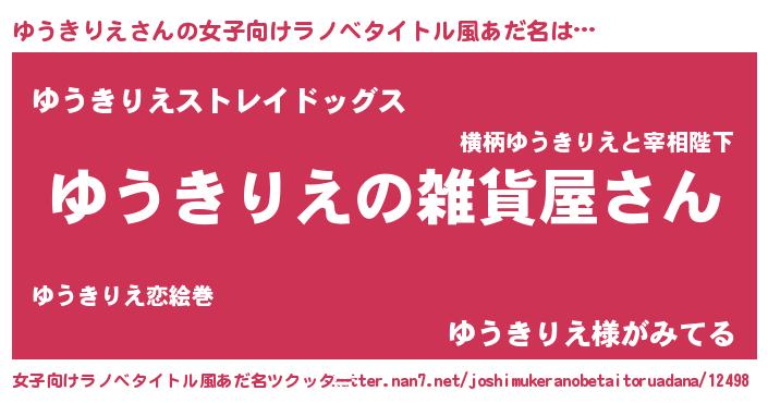 | 男性向けラノベタイトル風あだ名 | 『やはりゆうきりえの青春ラブコメはまちがっている 』 |
